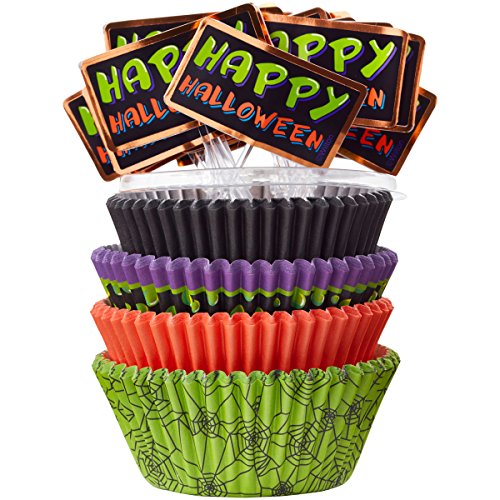 Studio : Wilton Publisher : Wilton Binding : Kitchen Product Description With 150 Halloween Cupcake Liners you can create a variety of festive party treats. Includes 25 of each: solid black, orange and purple, striped, polka dot and spider web print cupcake liners. Includes 150-2 in. (5 cm) standard baking cups and 25 Happy Halloween cupcake liners. 0