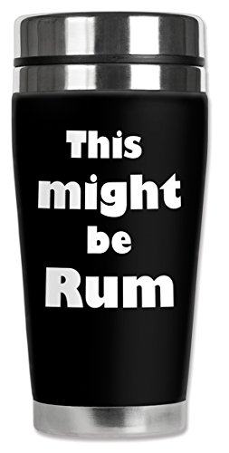 Mugzie 8923-MAX "Might be Rum" Stainless Steel Travel Mug with Insulated Wetsuit Cover, 20 oz, Black