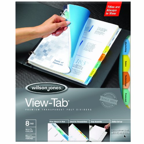 Wilson Jones View-Tab Transparent Dividers, 8-Tab Set, Square Multicolor, 5 Pack (5 sets of 8-Tab Dividers) (W55567)