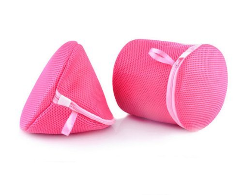 OPCC 2PC Delicates Thicken Washer or Washing Bag Triangle&Round Wash Bag, pink Bra Wash Laundry Portable Mesh Bag with Plastic Frame Construction