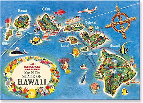 Hawaiian Art Collectible Refrigerator Magnet - Hawaiian Airlines State Map