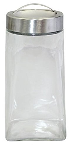 Gourmet Home Products Rounded Square Glass Storage Container Jar With Steel Lid and Handle, 54 oz, Clear