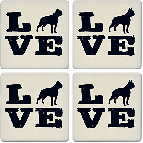 CoasterStone Absorbent Coasters, Pet Love Boston Terrier (Set of 4), 4-1/4", Multicolor