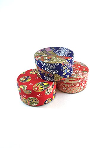 Washi Japanese Tea Tin 3 Pack (Set of 3 beautiful tea tins in "temari red", "sakura blue", "sakura red")