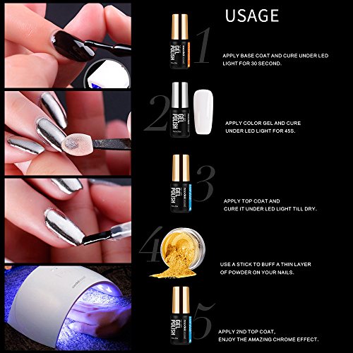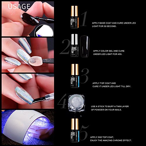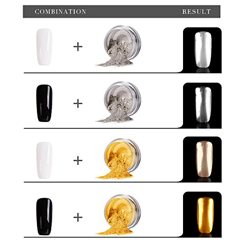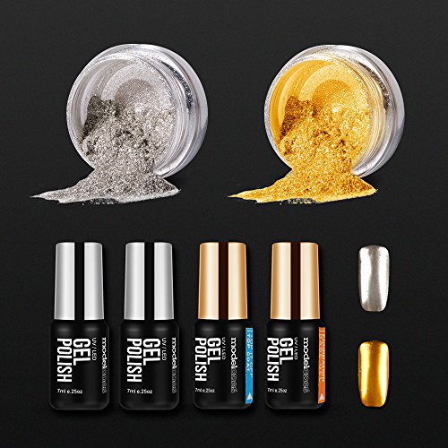 Modelones Mirror Nail Powder with Black and White Gel Nail Polish & Base Top Coat ¡