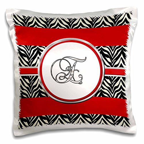3dRose pc_180700_1 Elegant Red black Zebra Animal Print Monogram Letter E-Pillow Case, 16 by 16"