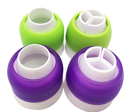 Four Russian Piping Tip Couplers for Large Size Russian Piping Tips, Two are 3-Color Couplers