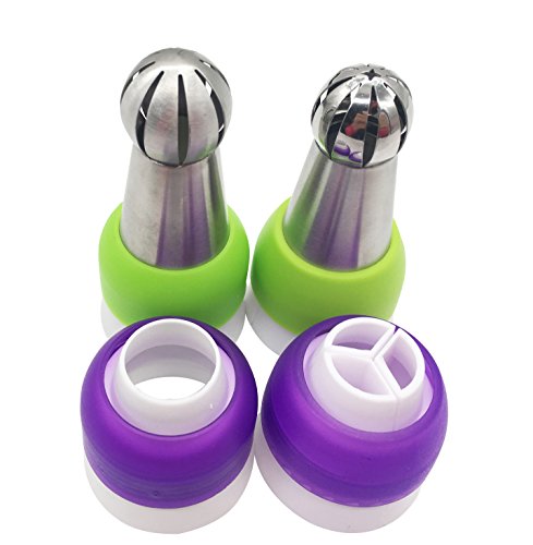Russian Ball Piping Tip Couplers 4Pcs/set, KOOTIPS Two One Hole Coupler and Two Three Hole CouplerFor Large Size Icing Nozzles | Quickly & Easily Attach and Swap Piping Tips