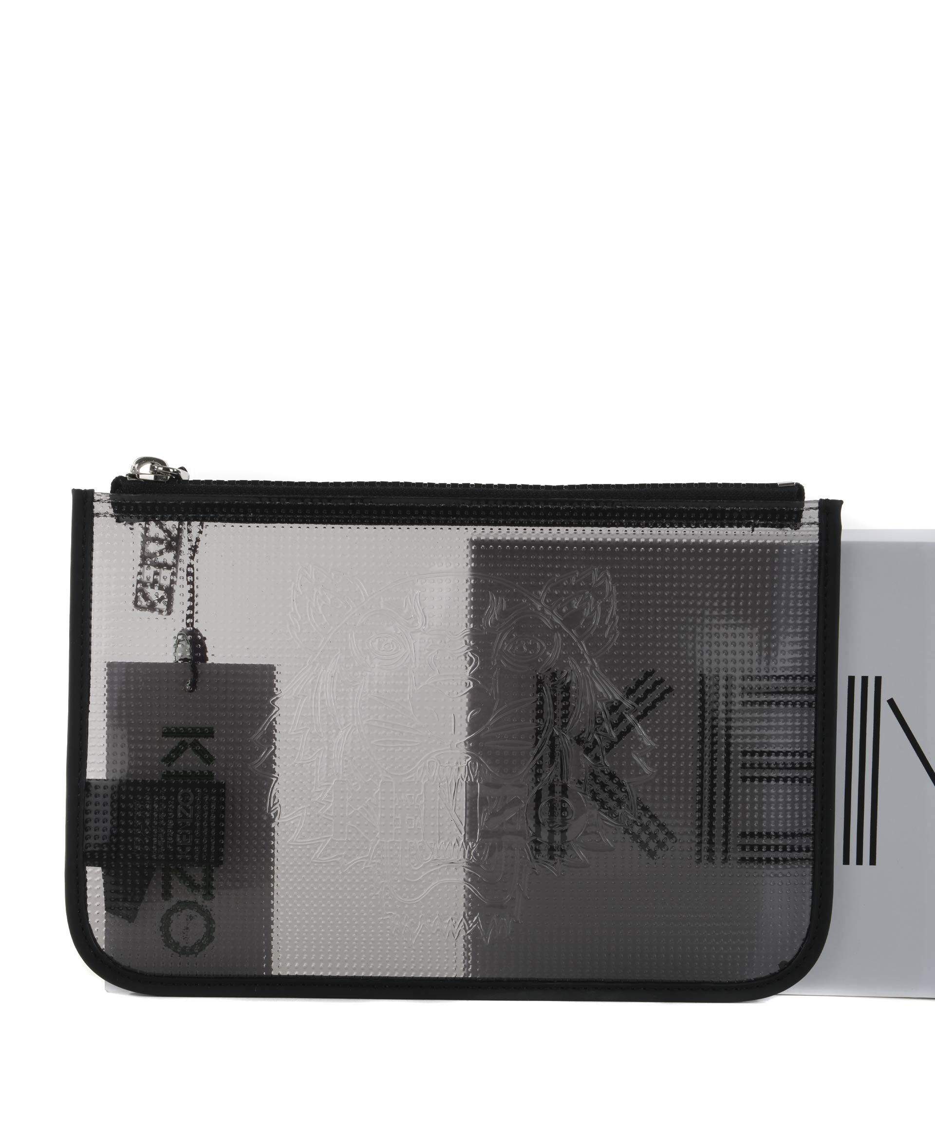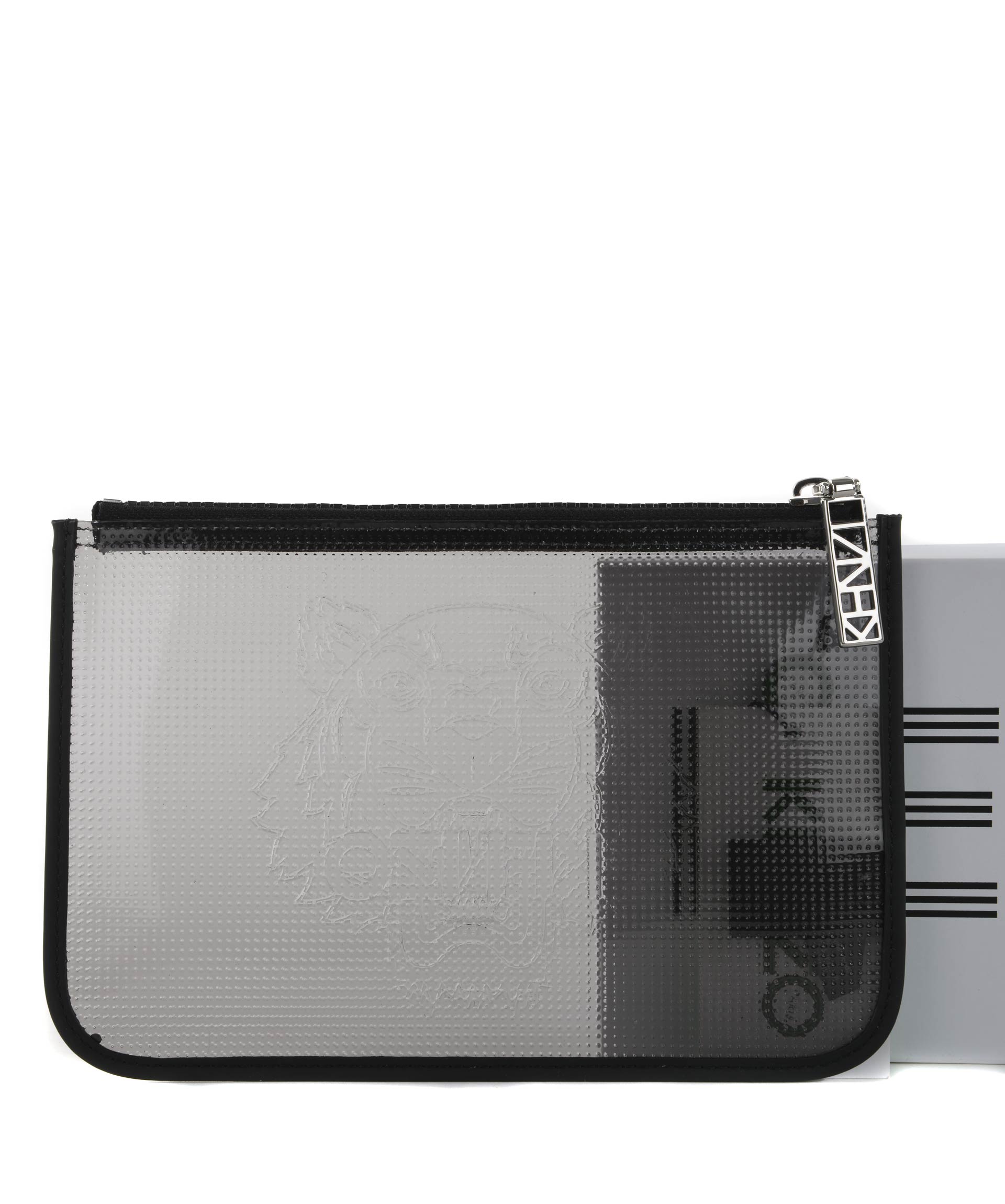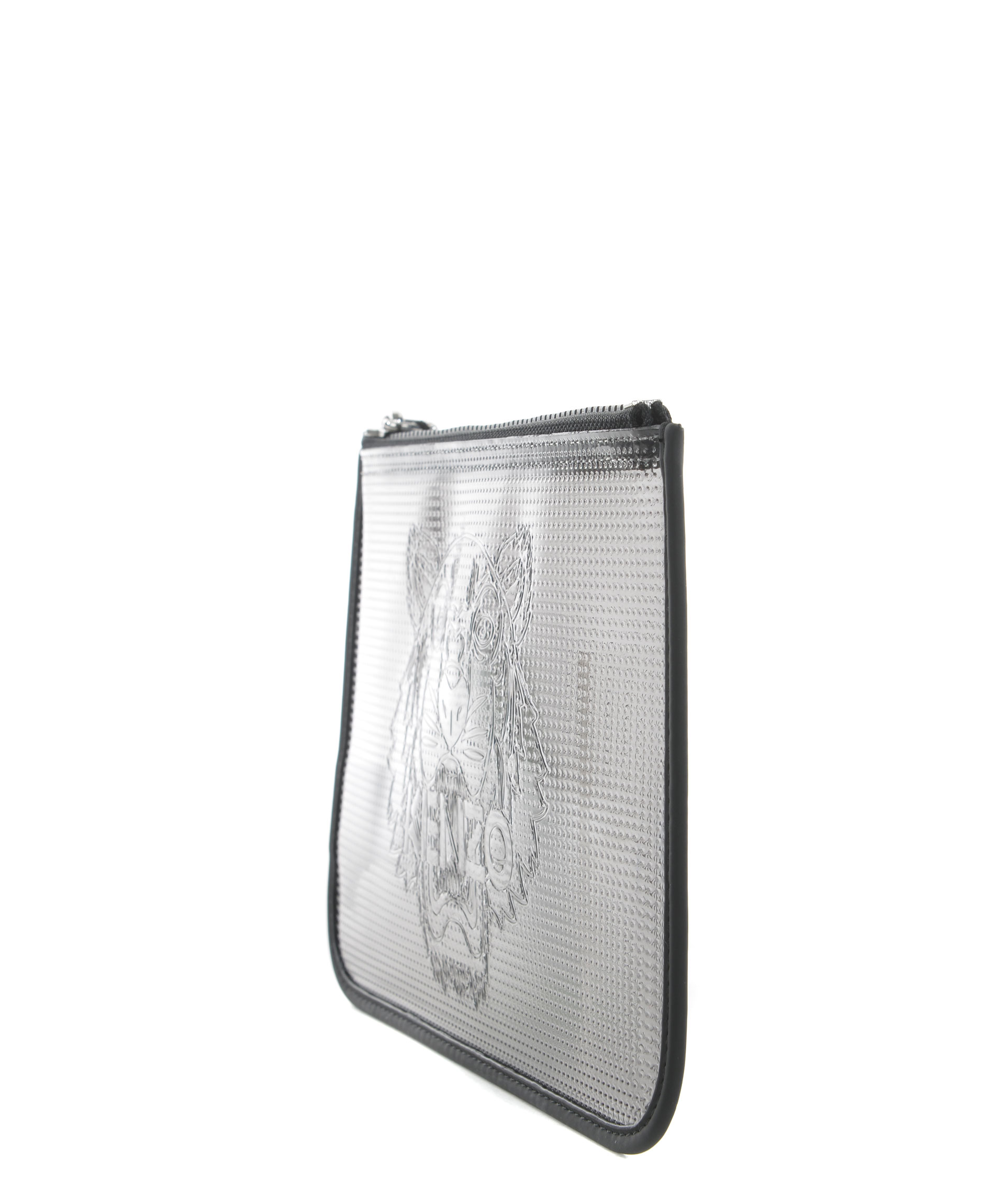 Tiger Clutch from Kenzo: Black Tiger Clutch with brand embossed logo on front, top zip closure and silver-tone hardware