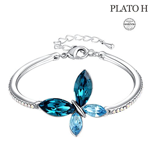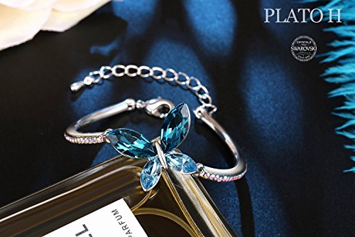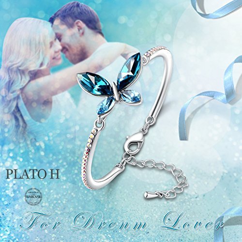 PLATO H Love Butterfly Bracelet for Women Fashion Jewelry with Crystals from Swarovski,BEST GIFT FOR MOM AND LOVER. PLATO H is the jewelry brand that is an Ingredient Branding Partner of SWAROVSKI (Brand Contract ID:SWA-17562-Y1S3Q7)
