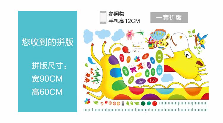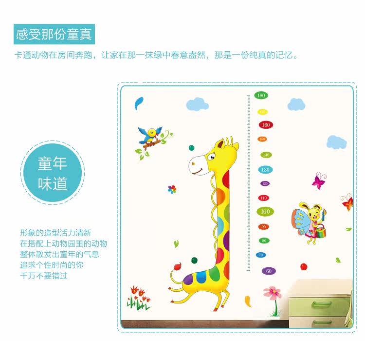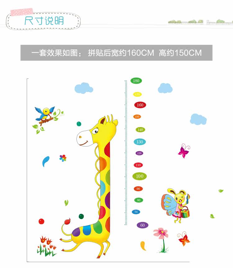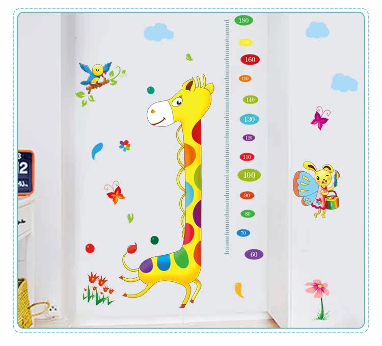身高贴卡通动漫可爱长颈鹿宝宝儿童房幼儿园布置量身高尺墙贴纸