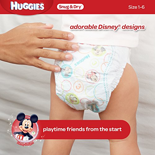 • Featuring adorable Mickey Mouse designs, HUGGIES Snug & Dry Diapers Size 1 fits babies from 8 to 14 lb.