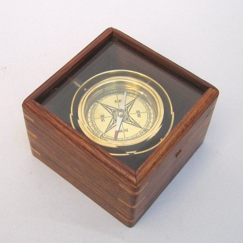A handtooled handcrafted gimble compass . Thats 4 1/2" in size. Made from 100% solid brass . It comes with? hardwood glass box. Thats been beautifully created precision made . It has been designed in a traditional international style . Item Specification - Handtooled Handcrafted