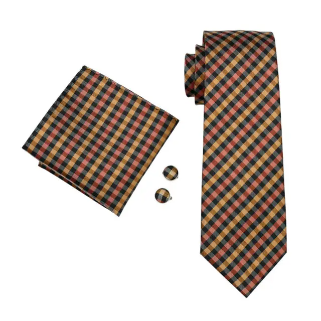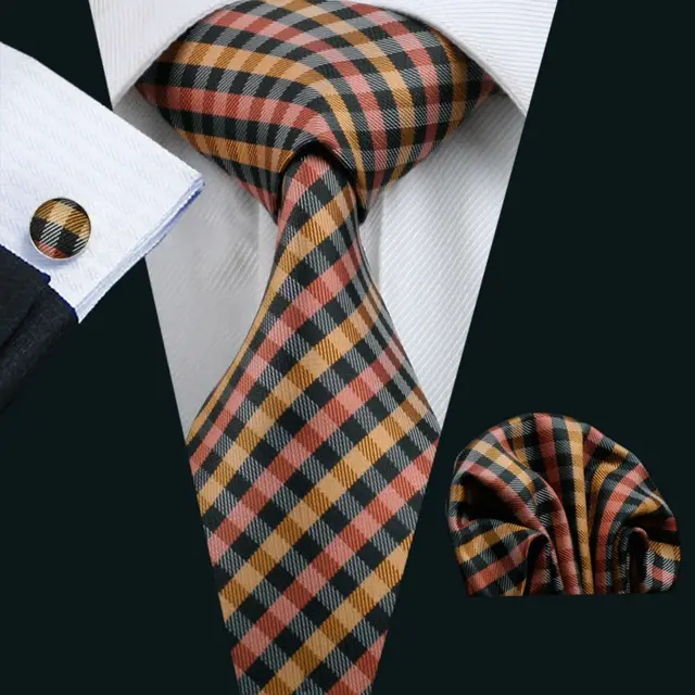 LS-1009 남성 넥타이 2016 클래식 격자 무늬 비즈니스 100% 실크 자카드 짠 넥타이 손수건 커프스 세트 남성 정장 웨딩 파티