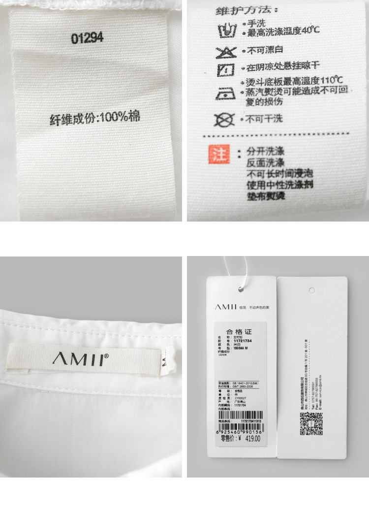 | 洗涤标准: | 40℃以下手洗110℃以下垫布熨烫不可漂白不可浸泡悬挂晾干不可干洗 |