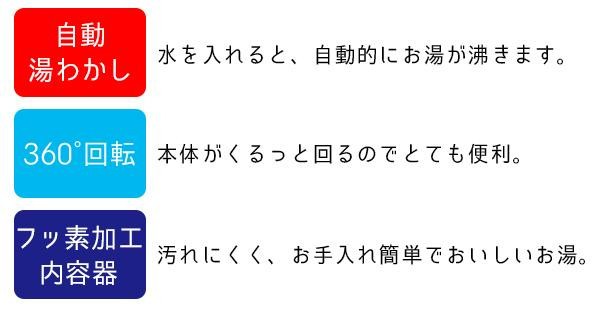 | 電気で沸かしてエアーで給湯。シンプル機能の電気エアーポット。 |