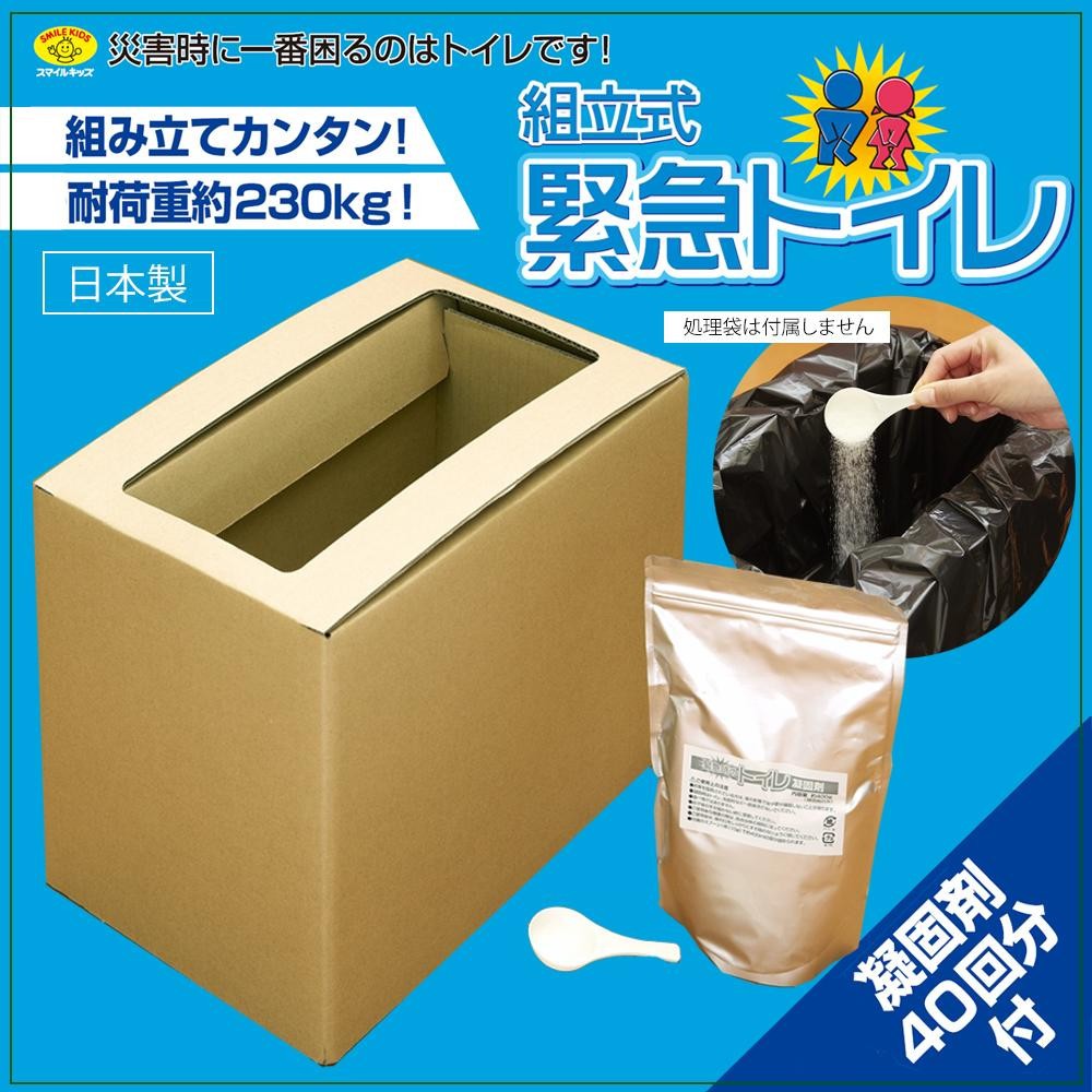 | 段ボール製の組み立てトイレと凝固剤のセット! |