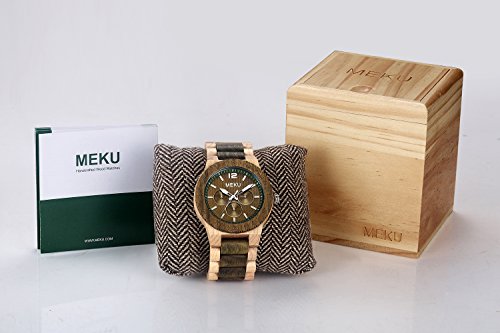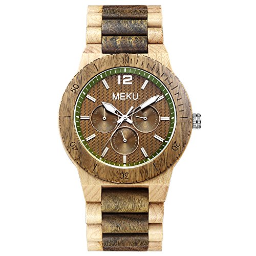 -. Title : MEKU Men's Wood Wrist Watch Quartz Day Date Wooden Watch Gift