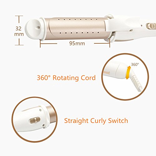 - 2 In 1 Hair Iron: 32mm ceramic Anion curling wand and ceramic hair straightener.