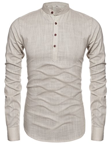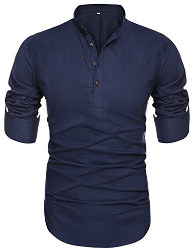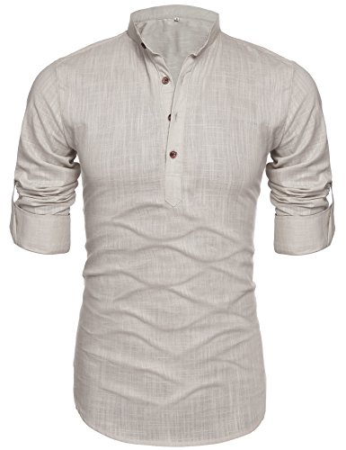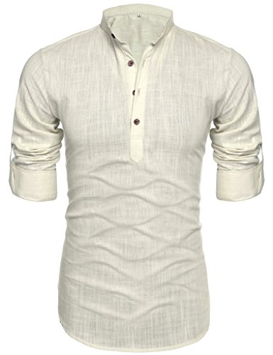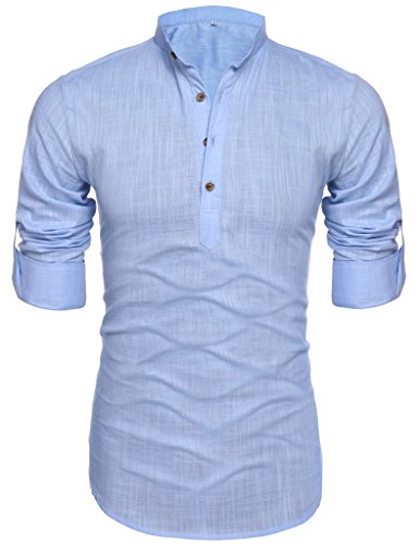 Mens Thin Henley Button-down Slim Fit Rollup Sleeve Shirt