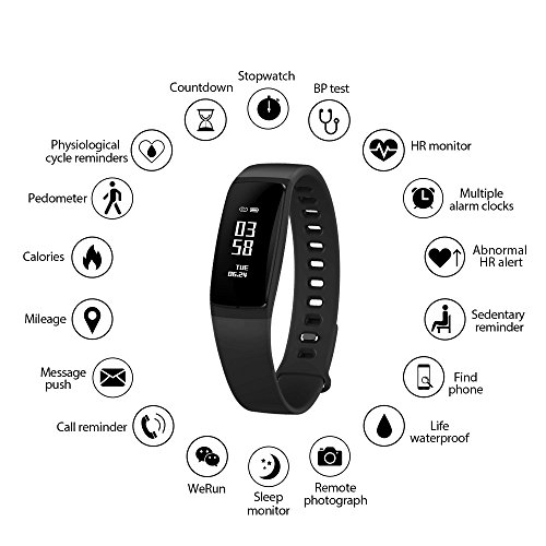 Studio : K-berho Publisher : K-berho Binding : Wireless Phone Accessory Product Description Function: 1. Blood pressure(Both the blood pressure and heart rate monitor can not use as the medical reference data.For it is not accurate 2. Real-time heart rate monitor and recall. 3.Pedometer and pedometer mode 4. Sleep based heart rate tracking algorithm. 5. detection of arrhythmias and memory. 6. Alarm with vibration. 7. Calculating the distance. 8. calories. 9. Call and SMS alarm with push message (can display phone number and SMS content). 10. Touch Screen. 11. RTC (12/24) 12. Update OTA.