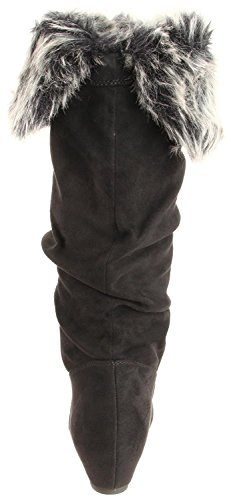 Synthetic upper Faux fur fold over cuff Scrunch style shaft? Textile lining Low hidden demi wedge? Man made outsole 0