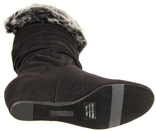 Amazon.com You'll want to pair this cold-weather cutie with all your smart casual looks. The Enfield boot from Report slips on without a fuss and features a faux-suede, slouchy upper with a snuggly synthetic fur collar and lining. The low wedge heel is wrapped for a sleek, modern silhouette. 0