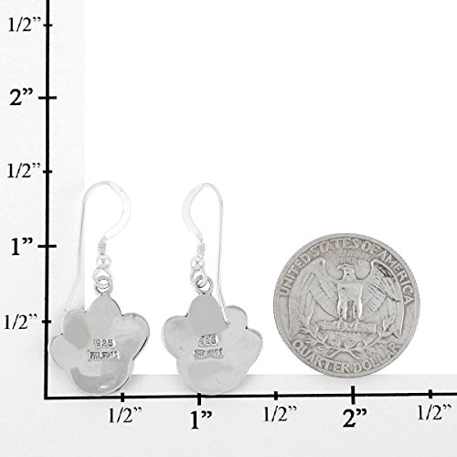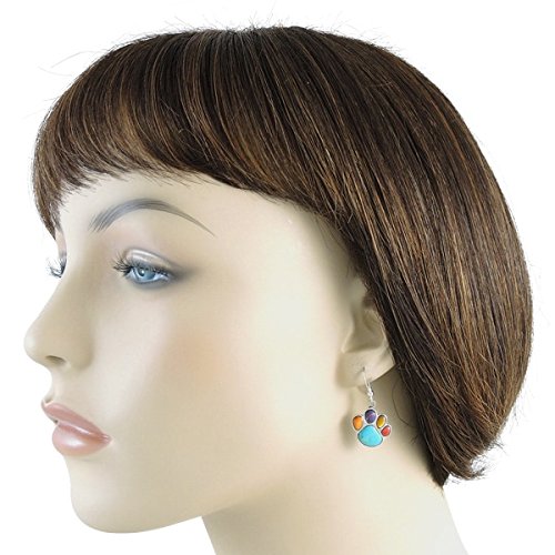 DOG LOVERS! Dog paw dangle earrings in 925 Sterling Silver and genuine gemstones. Amazing craftsmanship. About 2/3" tall (see ruler image).NOTE: Due to the nature of these gemstones, variations in colors/shades and minor imperfections are normal. Our turquoise has been stabilized, treated, and color-enhanced for beauty and durability. Satisfaction always guaranteed.