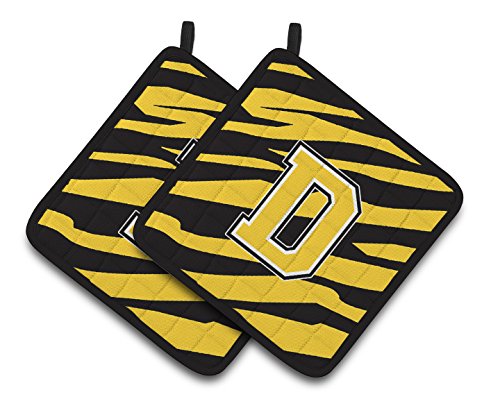 Caroline's Treasures Monogram Initial D Tiger Stripe - black Gold Pair of Pot Holders CJ1026-DPTHD, 7.5HX7.5W, Multicolor