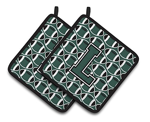 Caroline's Treasures Letter L Football green & White Pair of Pot Holders CJ1071-LPTHD, 7.5HX7.5W, Multicolor