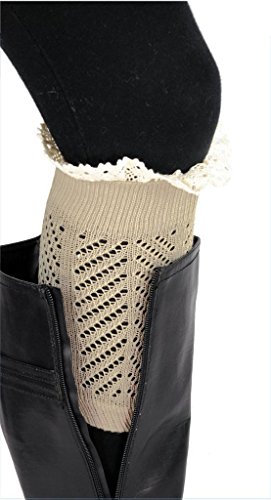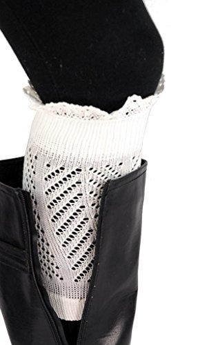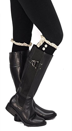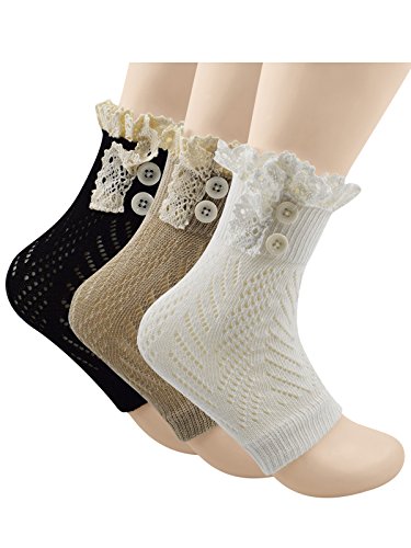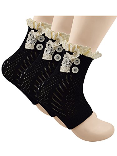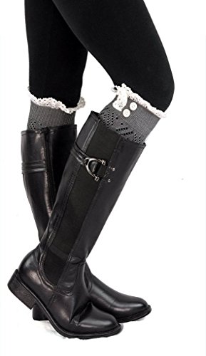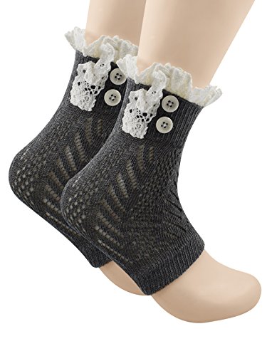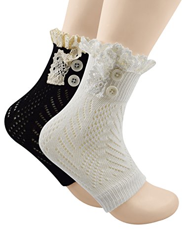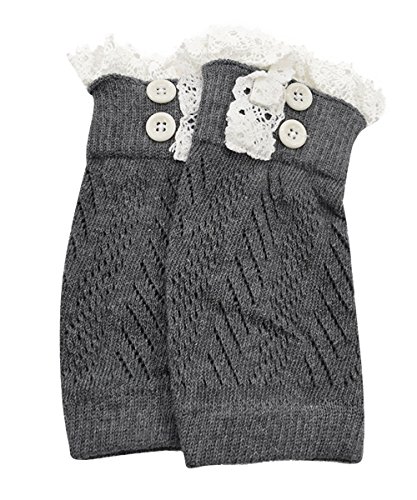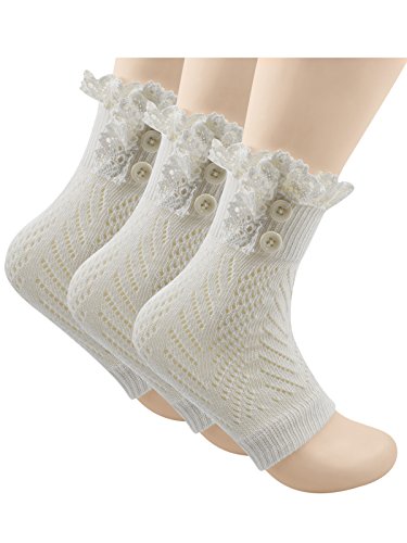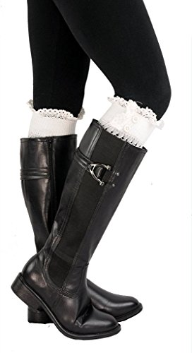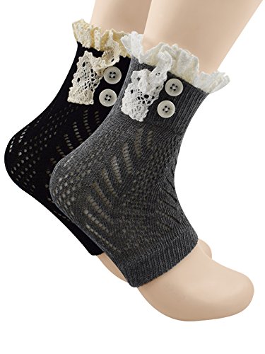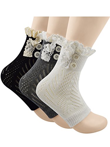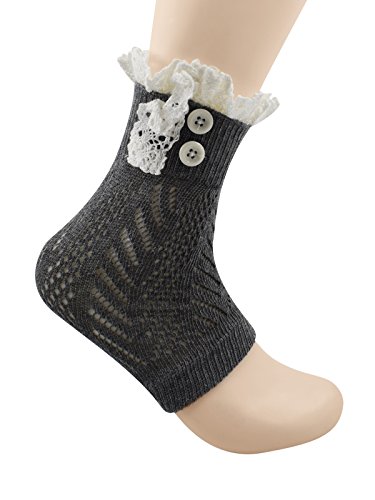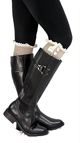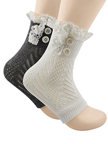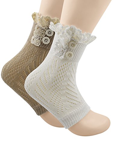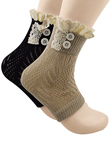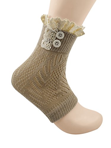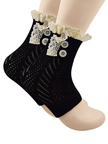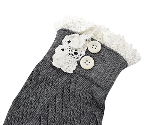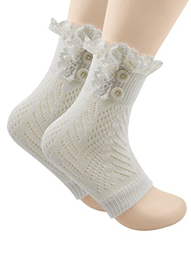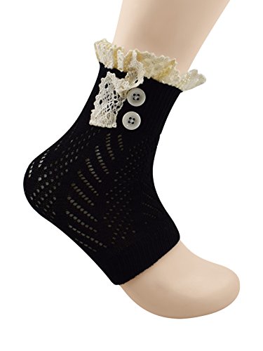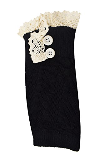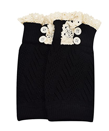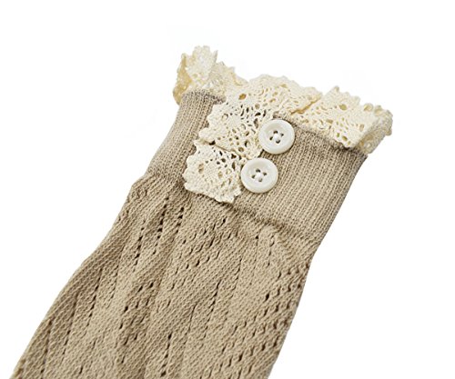 | Spring fever Women's Cotton Lace Boot Cuffs Trim and Buttons |