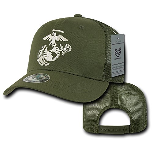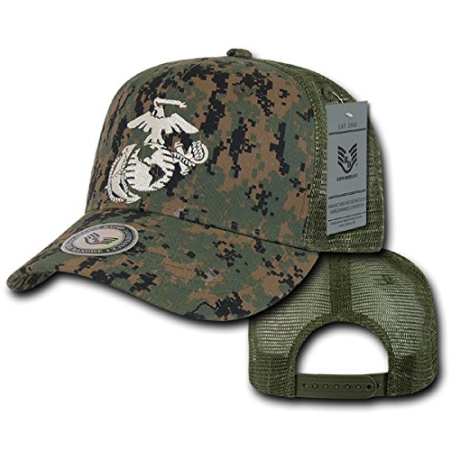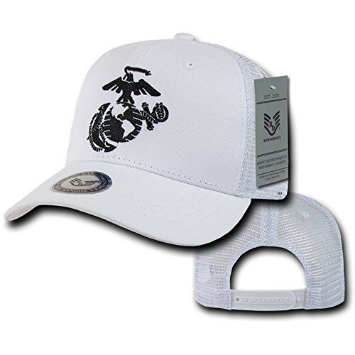 Binding : Apparel Product Description This Officially Lincensed US Marine Corps Embroidered Logo Adjustable Mesh Back Cap is perfect for any outdoor occasion. The Trucker cap is a 6-panel, constructed cap featuring a mesh back and high quality embroidery of various military/law enforcement agencies. These caps also include a cotton sweatband, stitched eyelets, and a curved bill. Comes with a snapback closure for a perfect fit. 50% Cotton, 50% Nylon. Official Licensed Military Logo. Curved Bill. Snapback matching adjustable closure. Cotton Sweatband. Imported. 0