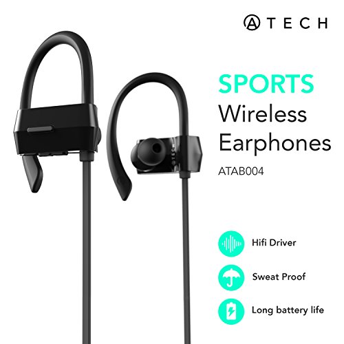 -. Title : ATECH Sports Bluetooth Earphones 4.1 Wireless Headphones with Mic IPX4 Sweatproof Earbuds for Gym Running Workout iPhone Android (Black)