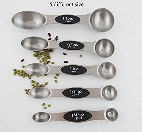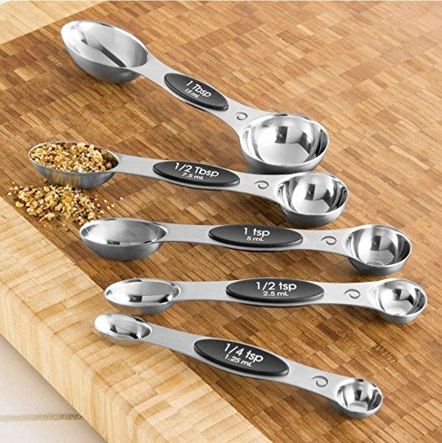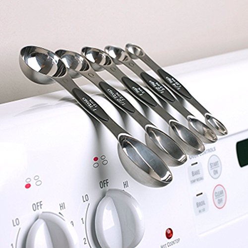 Set of 5 stainless steel magnetic spoons: 1/4 tsp, 1/2 tsp, 1 tsp, 1/2 Tbls, 1 Tbls