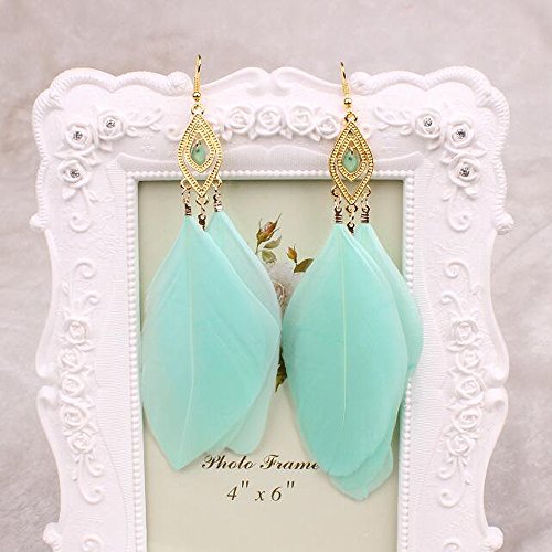 -. Title : A&C Fashion Bohemia Blue Feather Dangle Earrings Jewelry for Women, Hot Sell Indian Feather Eardrop for Girls.