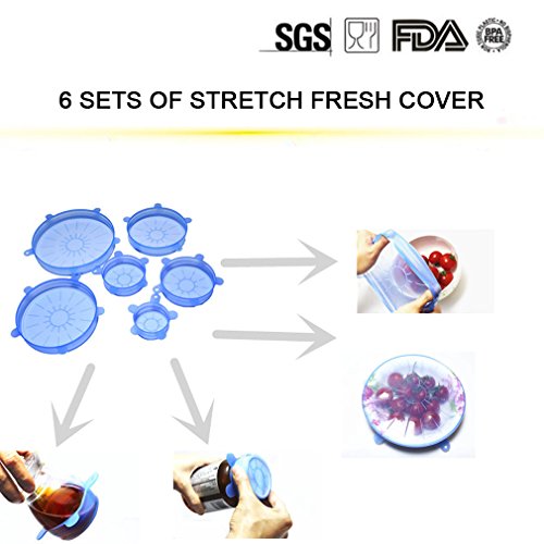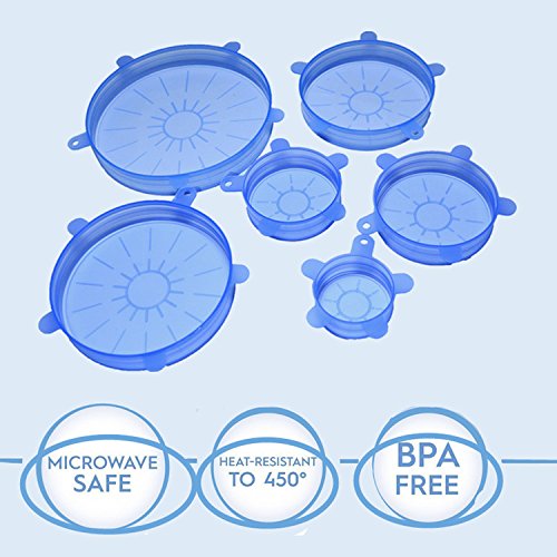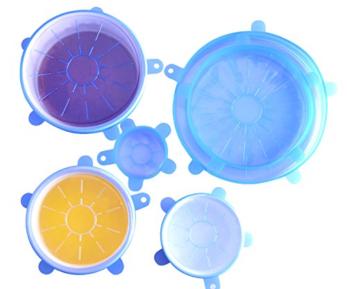 Pawkyjar Silicone Stretch Lids Reuseable Food storage covers,6 Pack of Various Sizes Blue