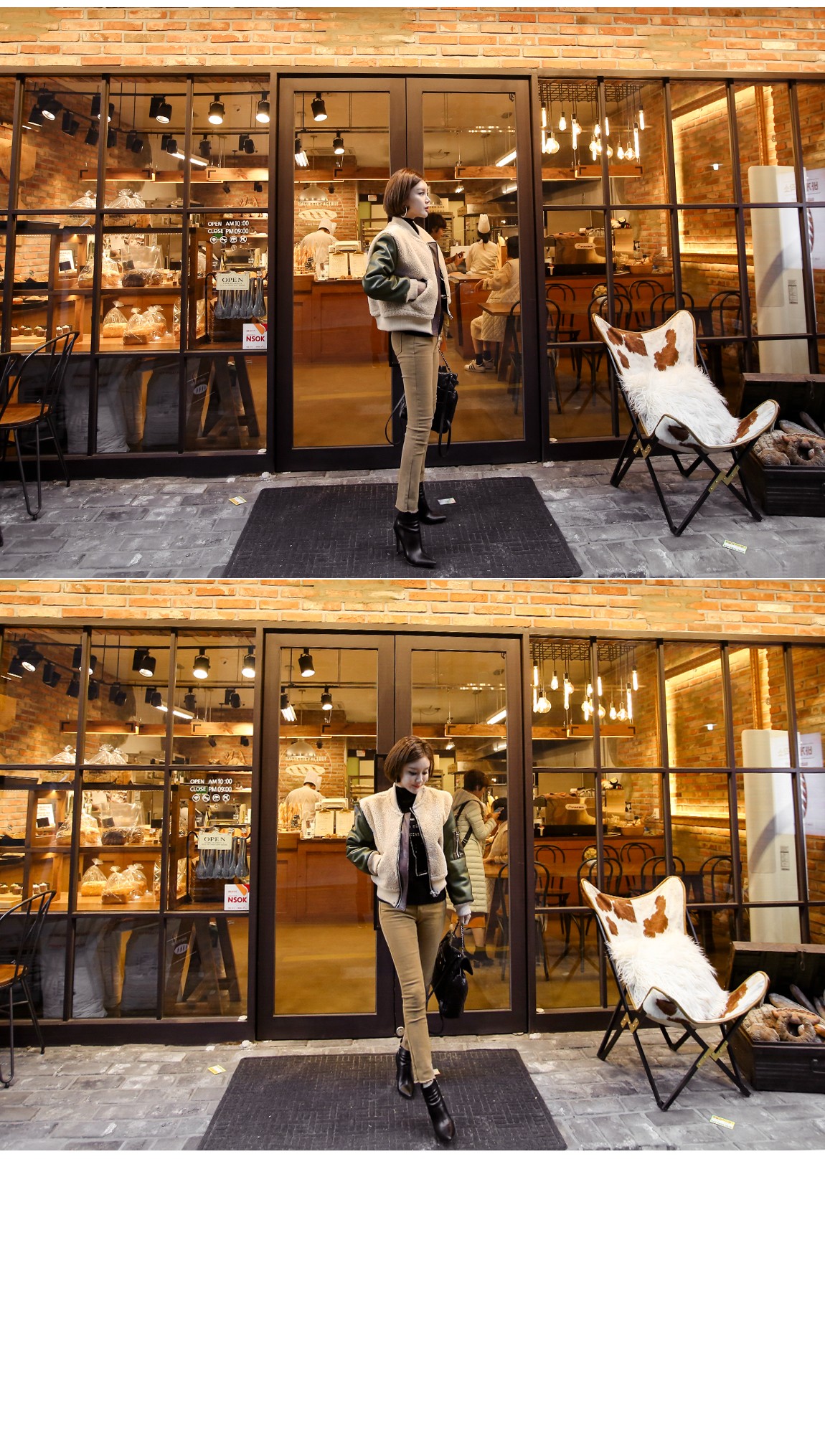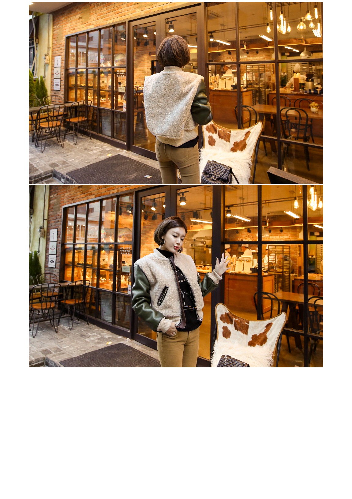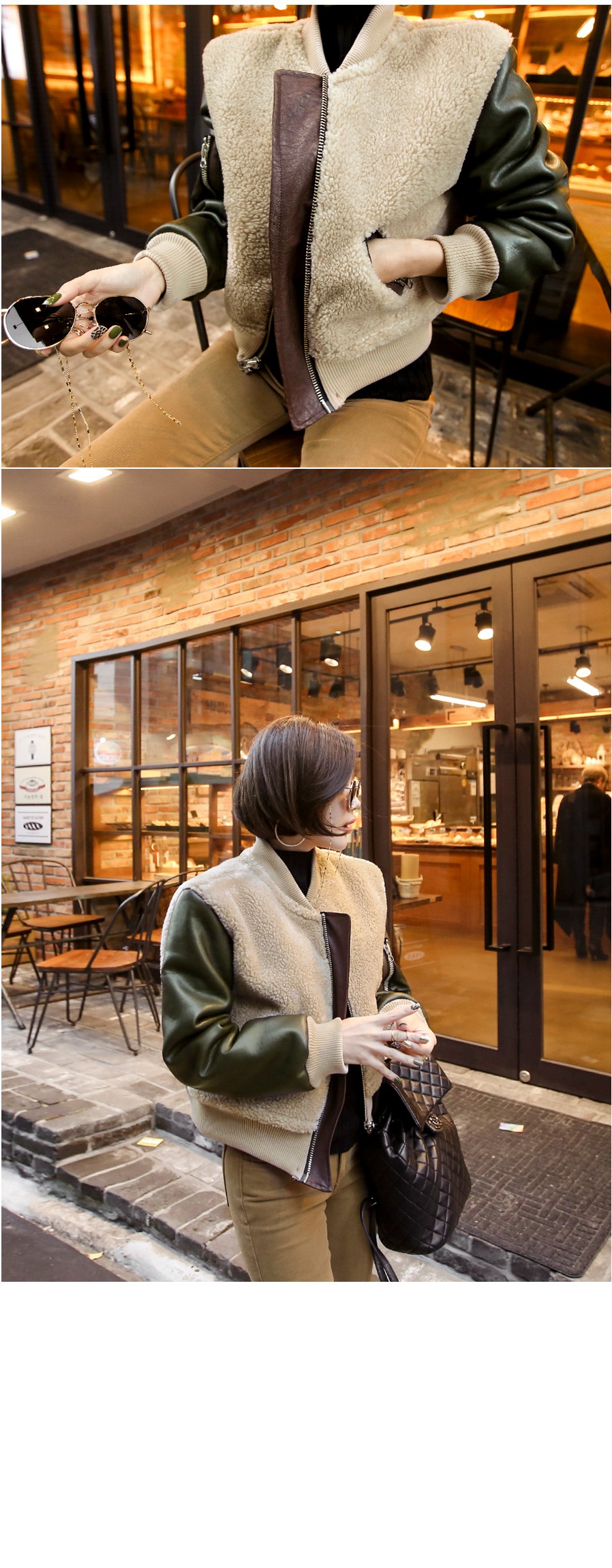 異なる素材と配色がおしゃれなジャケットです