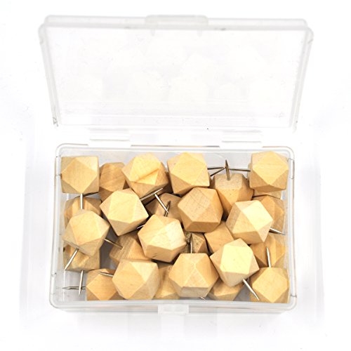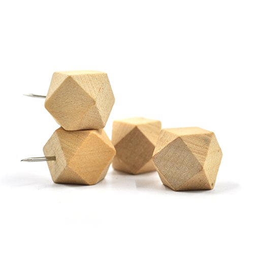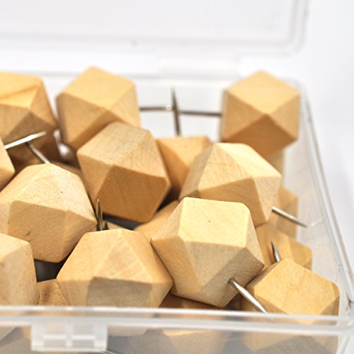 QUALITY ---eZAKKA Geometric Wood Push Pins are made of good quality natural wood head and steel needle point.Comes in a pack of 30 pieces Geometric Wooden Thumbtacks Pushpins.
