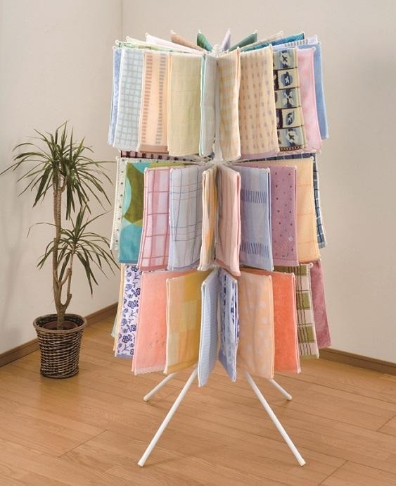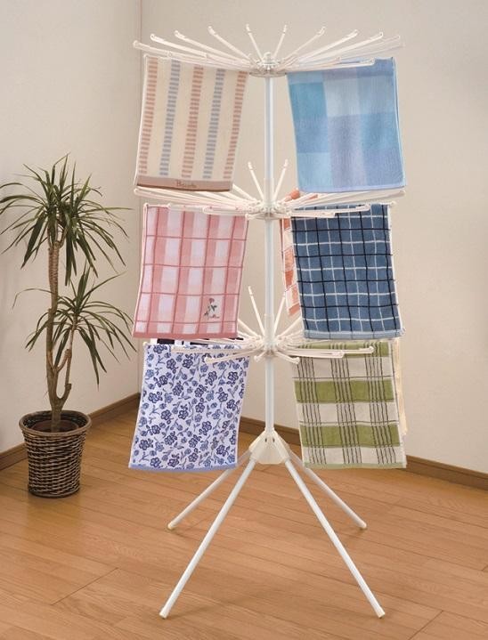 3段式の各段に20本のパラソル型ハンガーを備え、合計60枚ものタオルを干せる大容量タイプです。干し部は回転式なので、洗濯物を干す&取り込む際もラクラク。また干し部には、風で洗濯物が飛ぶのを防ぐクリップ付。靴下や下着、ハンカチなどの小物も一度に干せます。ご家庭以外に、保育施設・病院・飲食店などにもオススメです。 |