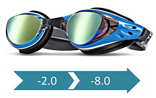 -. Title : WAVE Prescription Unisex Swim Goggles Mirror Coated, Optical Corrective Swimming Goggles Scratch Resistant, Anti-fog, UV Protection Nearsighted, Allergy-free, Ear Plugs & Nose Piece Included