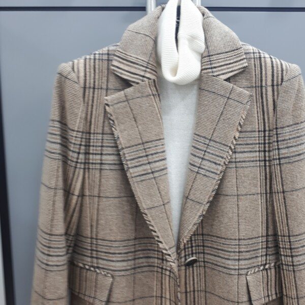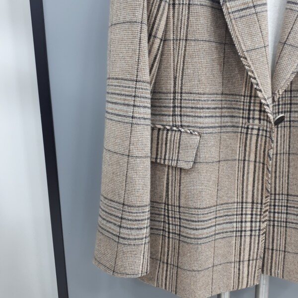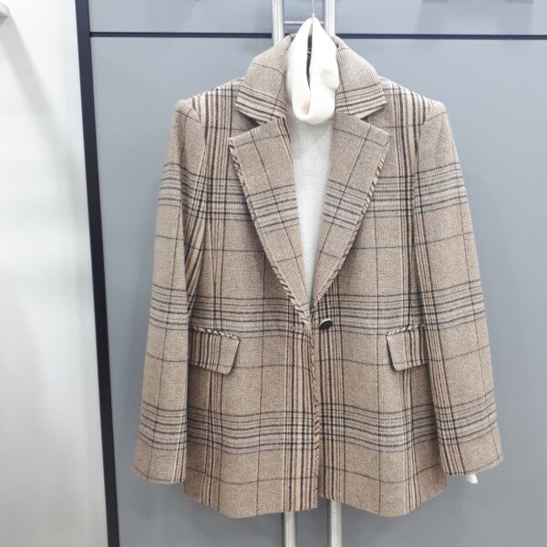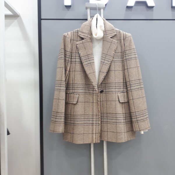 체크패턴이큼직한크기로레이어드되어진 모직쟈켓입니다카라부분디테일은 트위드식으로직조했습니다합을살쩍덮는미디엄기장입니다
