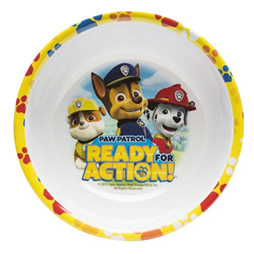 Set includes 3-sectioned plate, bowl, spoon and fork; all feature graphics from Paw Patrol Boy