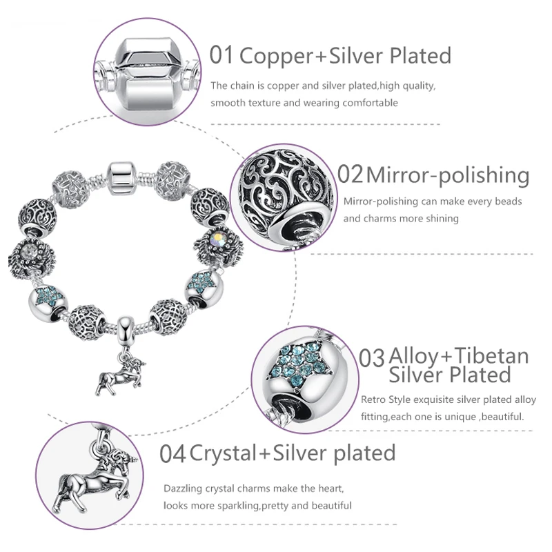 silver plated bracelet:owl/heart/horse/ animal friendship bracelet