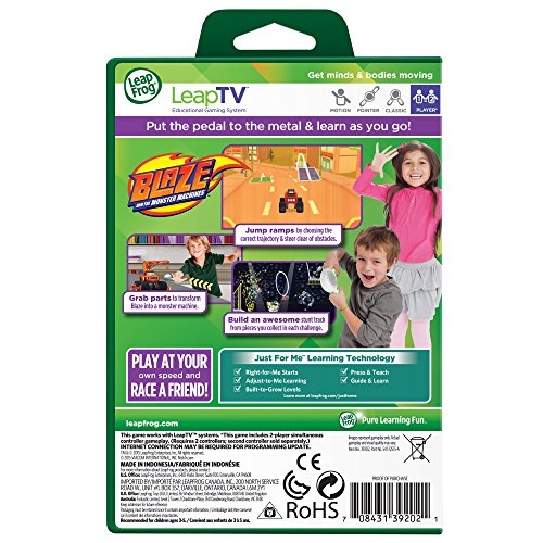 -. Feature : STEM skills seamlessly blend with active gameplay to race into stunt track victory with Blaze and AJ. / Features 15 challenges and Race A Friend activity. / For 1-2 players, ages 3 to 5 years. / Teaches number recognition, physical science, simple machines and problem solving. / Works with LeapTV video gaming system. Internet connection may be required for programming update. Multiplayer feature requires two controllers.