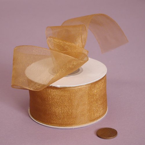 Old Gold Shimmer Sheer Organza Ribbon, 1-1/2" X 25Yd
