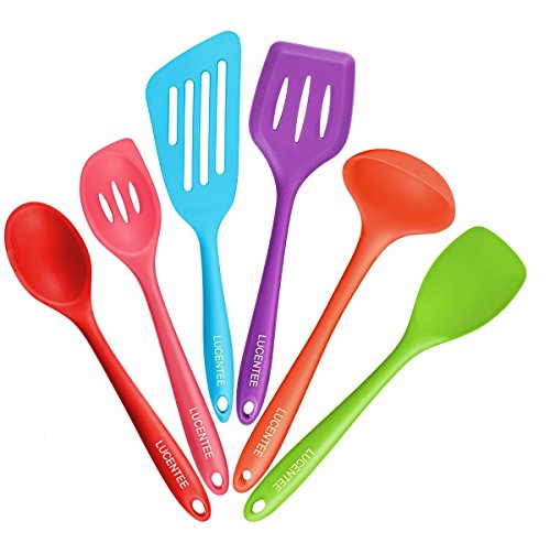 -. Feature : THIS HIGH QUALITY 6-PIECE KITCHEN UTENSILS SET INCLUDES: - 2 Large Silicone Spoons (1 x Slotted Cooking Spoon & 1 x Non-Slotted Cooking Spoon), 1 x Silicone Ladle, 1 x Fish / Omelette Turner, 1 x Multi Purpose Cooking Turner and a Spoonula (Half Spoon, Half Spatula). If You Want a Kitchen Utensils Set that Offer You Everything, Without Costing You a Fortune Buying Each Piece Individually, Then Look No Further, Because LUCENTEE Brings You the Cooking Set Solution! / BEST QUALITY MATERIALS CHOSEN FOR LONGEVITY: LUCENTEE's Silicone Utensils are Carefully Crafted from a Durable Nylon Inner Core, which Gives the Utensils Flexibility and Durability whilst Cooking All Types of Foods. The Outer Body is Made from Beautifully Colored Premium Silicone. All Silicone used by LUCENTEE is FDA Grade and BPA Free. The End Result is a Utensils Set that is Super Soft to the Touch, but also Easy to Grip and Very Practical for Cooking. / FULL LUCENTEE WARRANTY: If You're Not Completely Satisfied with Your Purchase Simply Let us Know and You'll be Offered a FULL Refund or Replacement, No Questions Asked. Enjoy this Absolutely RISK FREE Purchase Today by Clicking the Yellow 'ADD TO CART BUTTON"' Above / OTHER BENEFITS / FEATURES: All Utensils are Heat Resistant up to 600°F. They are also Stain & Odor Resistant. Each Utensil is Made from One-Piece Silicone, so there is Nowhere for Bacteria to Hide. All Utensils are Easy to use and Clean. Simply Rinse under Running Water or Throw them in the Dishwasher. These are Non-Stick Friendly Silicone Utensils, Ensuring Complete Protection when Using with Your Expensive Pots and Pans! A Great Kitchen Set or Gift/ Christmas (xmas) Present for New Homeowners! / THE ULTIMATE COOKING UTENSILS SET: Whether You Need a Turner for that Burger, or Spoons for Serving up That Perfect Dish, this Utensil Set Does it all. The Silicone Ladle is Perfect for Soups or Homemade Gravy and The Spoonula is Extremely Versatile - Great for Decorating Cakes, Mixing Batters or Simply Just Stirring! The Bonus Fish Turner Really Completes this Cooking Set. No Other Seller Offers this on the Market Right Now. Large handles Ensure Maximum Control Whilst Cooking.