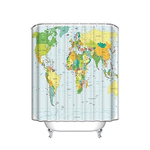 YEHO Art Gallery Bath Shower Curtain with Color World Map Pattern Fabric Waterproof Barthroom Shower Curtain with Hooks 72X72 inches