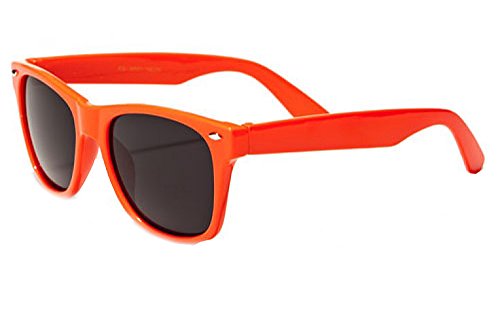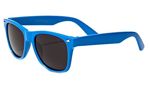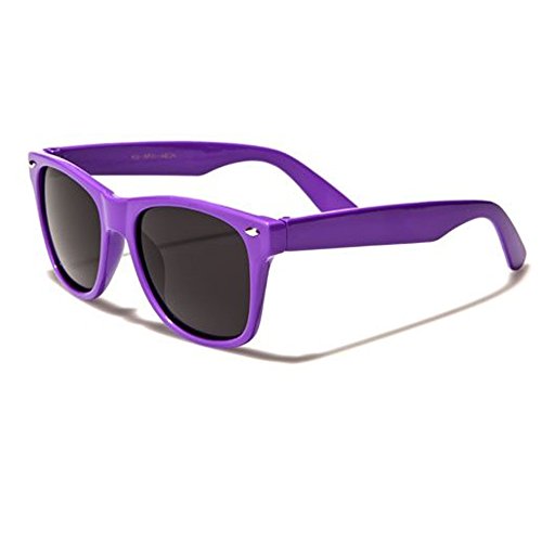 The frame is plastic and designed to hold up to rough and tumble use, but be comfortable to wear. The lenses are dark, offering great protection from the sun to small eyes. Spoil your kids and get them a great set of bright shades.Feature