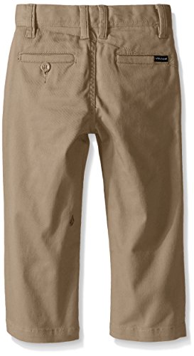The Volcom modern stretch chino pant is perfect for the skate park or the office. This chino is made from a comfortable cotton and polyester blend with a little stretch to make sure you get a full range of motion. Loaded with details like custom stone embroidery on the inside left leg, Volcom flag tag on back right pocket and an asymmetrical back yoke, this is the plant that will set you apart.Feature