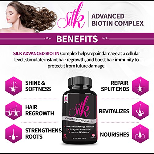 -. Title : Silk Advanced Biotin Complex- Promotes Stronger, Longer, Hair-Healthier Skin- Ultimate Nail Strength